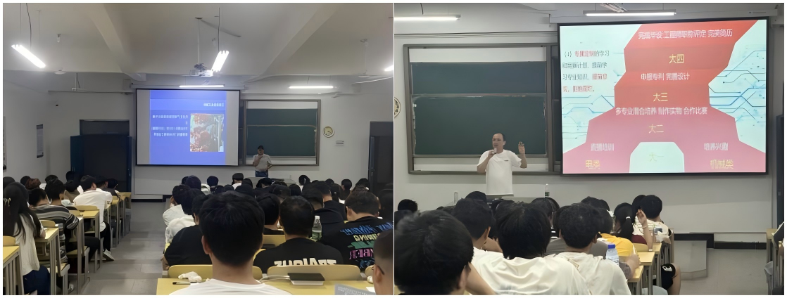 此外,陶彬彬教授向新生们重点介绍了分拣机器人实验室。该实验室创新采用“导师制”培养模式,旨在系统提升学生的交叉学科素养与实践能力,并以高水平竞赛为平台,全面驱动学生实践与创新精神的培养。陶教授还结合实验室往届毕业生在考研与就业方面取得的优异成绩,为同学们规划未来学业与职业生涯提供了清晰参考和有力借鉴。
