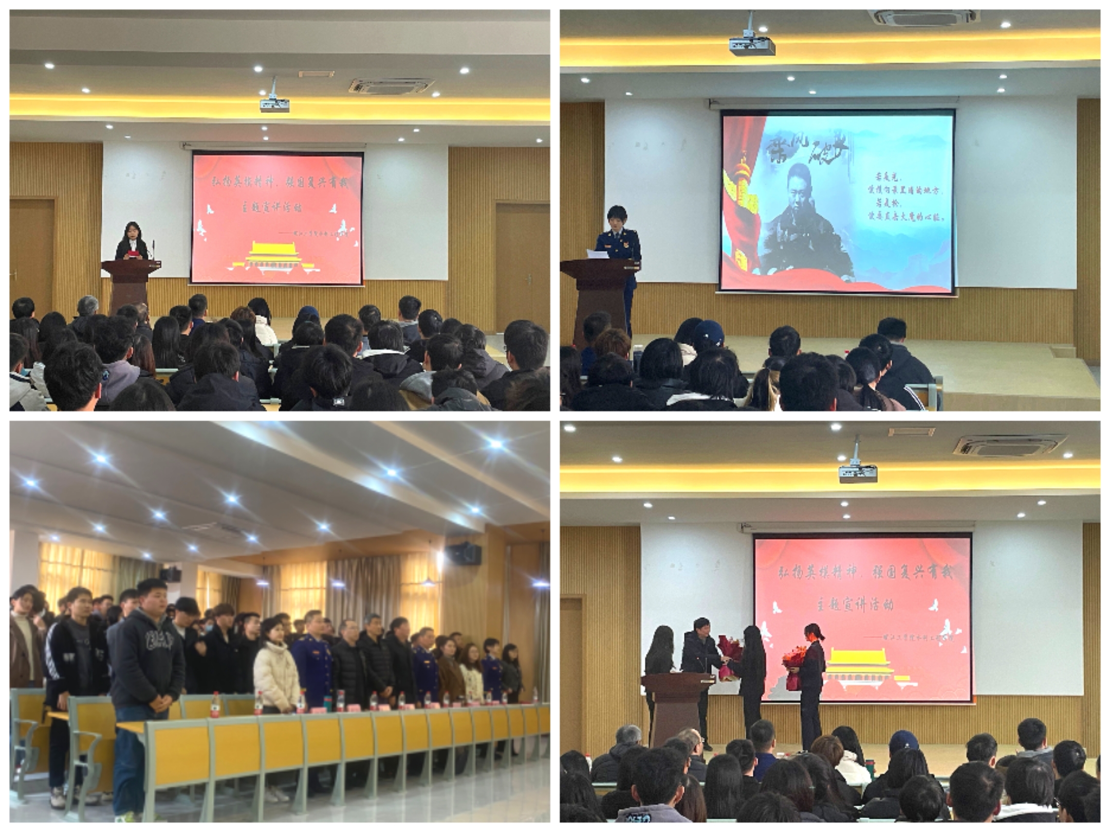 为推动党史学习教育,传承英模精神,弘扬爱国主义情怀,3月1日下午,由市委宣传部、市委讲师团、市退役军人事务局、团市委、18新利怎样共同举办的“弘扬英模精神强国复兴有我”主题宣讲报告会在T南101报告厅开讲。水利工程学院党总支书记李冠华,马鞍山市市委讲师团团长赵宇,雨山区消防救援大队政治教导员王世和,马鞍山市消防救援支队机关党委专职副书记陈飞,学院党总支副书记王秋玉,辅导员何源、戴玉与现场170多名学生共同参会,我校2012级杰出校友彭迪烈士父亲作为特邀嘉宾出席。
