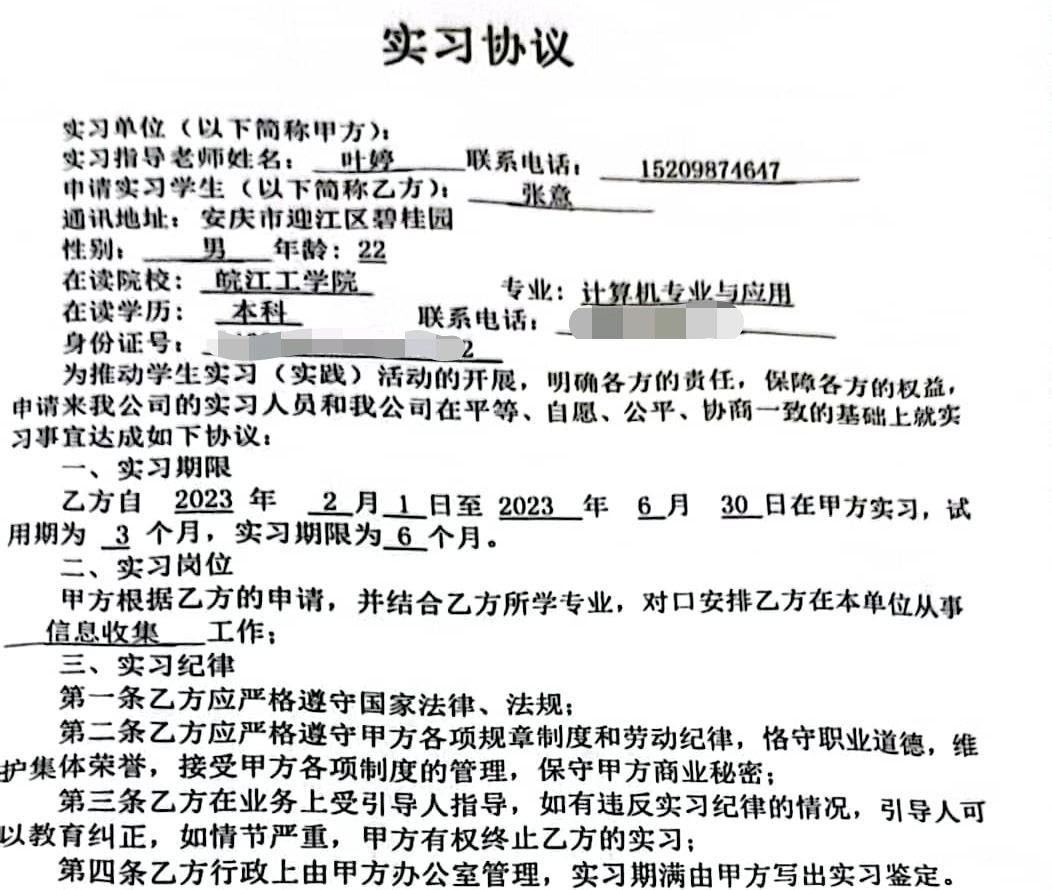 我是18新利怎样 2019 级计算机科学与技术专业张意,我高中毕业于安庆九一六学 校。目前在合肥小布智能公司做软件开发工作,薪资待遇 9K*14 薪。大二期间加入了双创学院大数据与人工智能实验室,在大学生