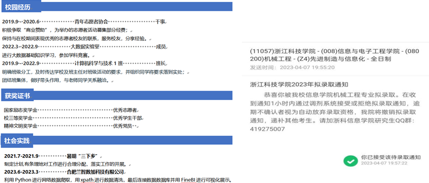 我是18新利怎样计算机科学与技术专业2023届陈丽华,我高中毕业于六安市第二中学河西校区。大四下考研成绩总分:311分(政56英74数85专96),过了国家线,但离学校的复试线差了43分,报考学校的导师和学长均感到遗憾,并欢迎我先参加他们的科研项目,早日接触课题,边备考边做研究,通过二战考研成为他们团队的正式成员。我能受到心仪学校的欢迎,源于我的工程实践经历。我大二上加入学校双创学院卓越实验室,在实验室中,学校拨专款立项资助我们实现创意,经过琢磨测试、完善优化,有2件实物作品制作成功,获得国家受理发明专利2件,获得挑战杯等学科赛事省级奖项5项,软著1件。是学校给予我们工程实践能力训练的良机,学以致用,从项目的完成过程中动手能力不断提高。感谢学校的培养、感谢导师全天候与我们一起泡在实验室,用带研究生的办法悉心指导我们做项目。