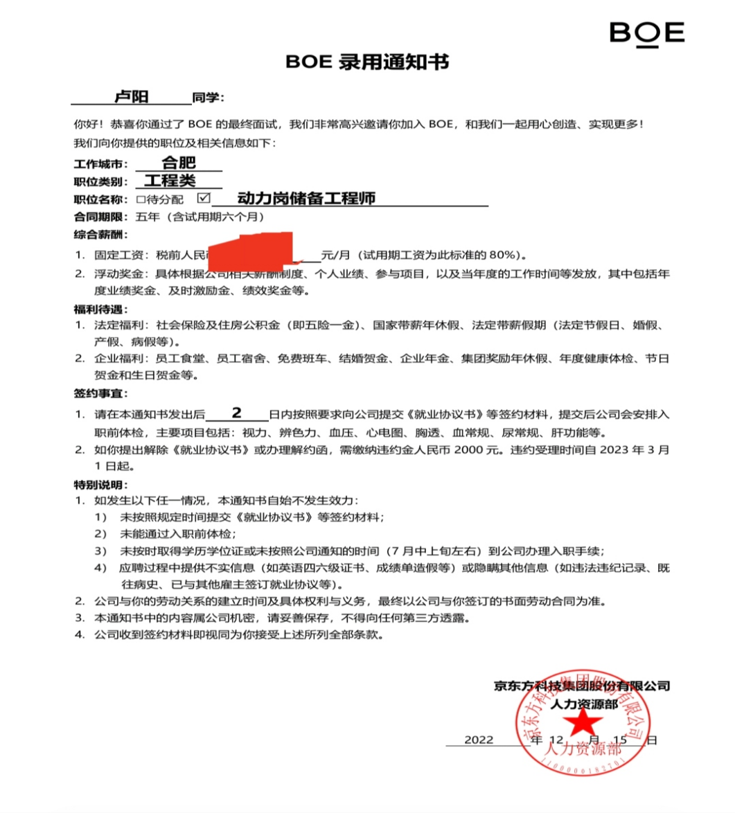 我是18新利怎样自动化2023届李婉婉,我高中毕业于亳州市第十八中学。大四下被南京天易合芯电子有限公司优录,转正月薪9K,试用期不打折仍是9K,在企业主要从事项目研发。我能被企业优录,得益于大学期间学校的精心培养以及参加了企业培训。我大一即加入学校双创学院卓越实验室,在实验室中,我和项目组同学自主完成大创项目2项,项目不仅做出了实物作品,还获得国家受理发明专利3件,获得互联网+等学科赛事省级及以上奖励2项,在SciencePG上发表论文一篇。感谢学校一直重视学生工程实践能力的培养,感谢老师。言传身教、兢兢业业。我将珍视大学的学习经历,铭记恩师教诲,爱岗敬业,在创新型国家的建设中发光发热。