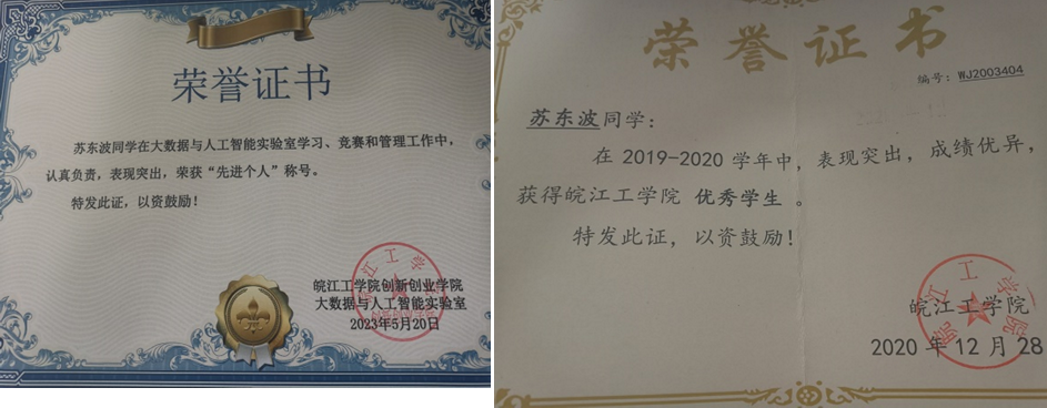 使君有政教,必本之学校。毫无疑问获得的各种奖项离不开学校、实验室、指导老师以及实验室成员的帮助。感谢实验室这个大家庭,感谢学习提供的良好环境,方老师的细心指导,伙伴的热情相助。