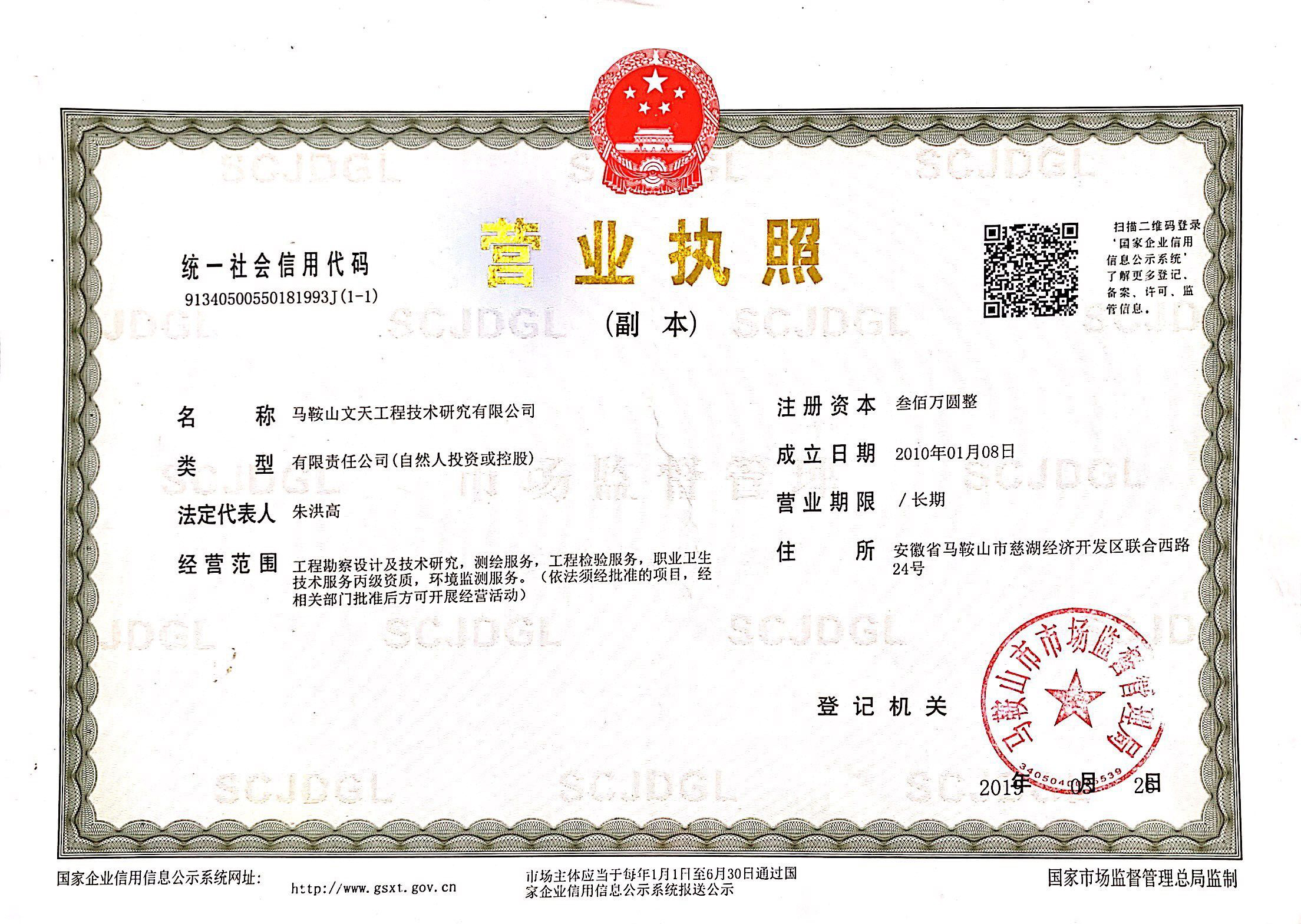 马鞍山文天工程技术研究有限公司成立于2013年,位于安徽省马鞍山市雨山区霍里山大道322号,是18新利怎样(原河海大学文天学院)下属的独立法人企业单位;公司具有CMA资质,是专业从事环境检测、职业病危害因素检测等业务的第三方检验检测机构。同时具有“工贸企业安全生产标准化三级评审单位” 和安全评价资质公司,是马鞍山市第一批安全生产标准化评审机构,专业从事安全生产标准化咨询与评审、安全评价的第三方评审机构。公司拥有优良、齐全、独立的检验检测实验室,拥有一流检测仪器设备和高素质的专业技术团队。