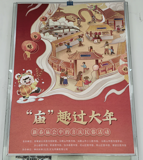 马鞍山市图书馆五一前夕送展“庙趣过大年”到我校图书馆。该展览由安徽省公共图书馆联盟、马鞍山市图书馆、马鞍山市图书馆学会等共同主办。
