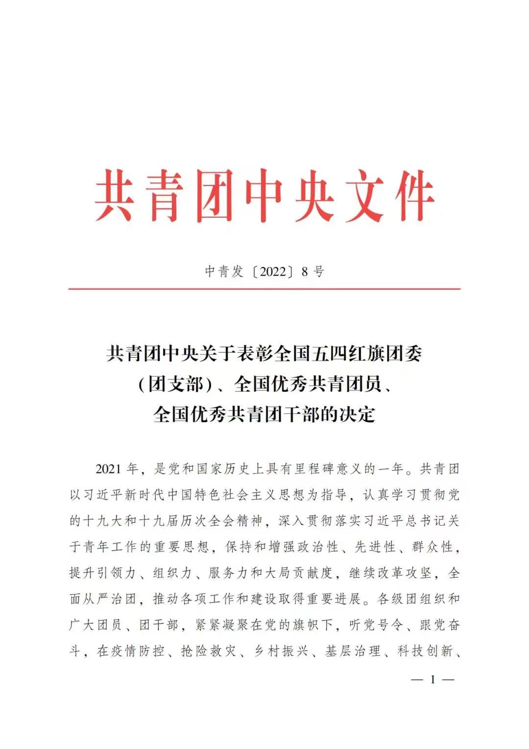 2022年是中国共青团成立100周年,在五四青年节来临之际,共青团中央下发《关于表彰全国五四红旗团委(团支部)、全国优秀共青团员、全国优秀共青团干部的决定》,18新利怎样2018级机械工程学院能源与动力工程专业的汪始兴同学荣获2021-2022年度全国优秀共青团员称号。