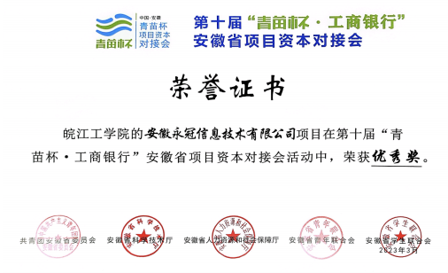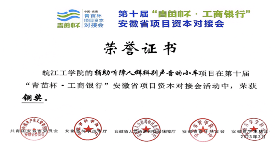 近日,由共青团安徽省委、安徽省科技厅、安徽省人社厅、安徽省青联和安徽省学联联合主办,中国工商银行安徽省分行承办的第十届“青苗杯.工商银行”安徽省项目资本对接会在合肥举办。活动共征集了全省高校的232件创业项目,我校报送的五个参赛创业项目斩获铜奖1项、优秀奖4项。