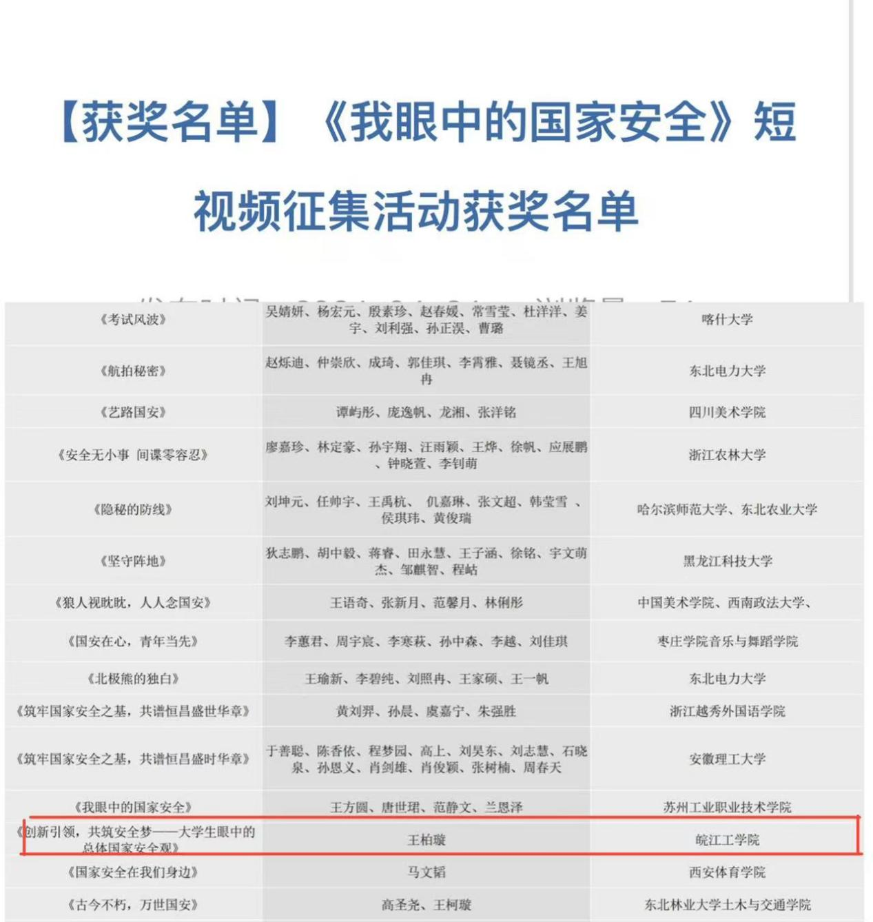 我校作品在首届大学生《我眼中的国家安全》 短视频大赛中荣获优秀奖