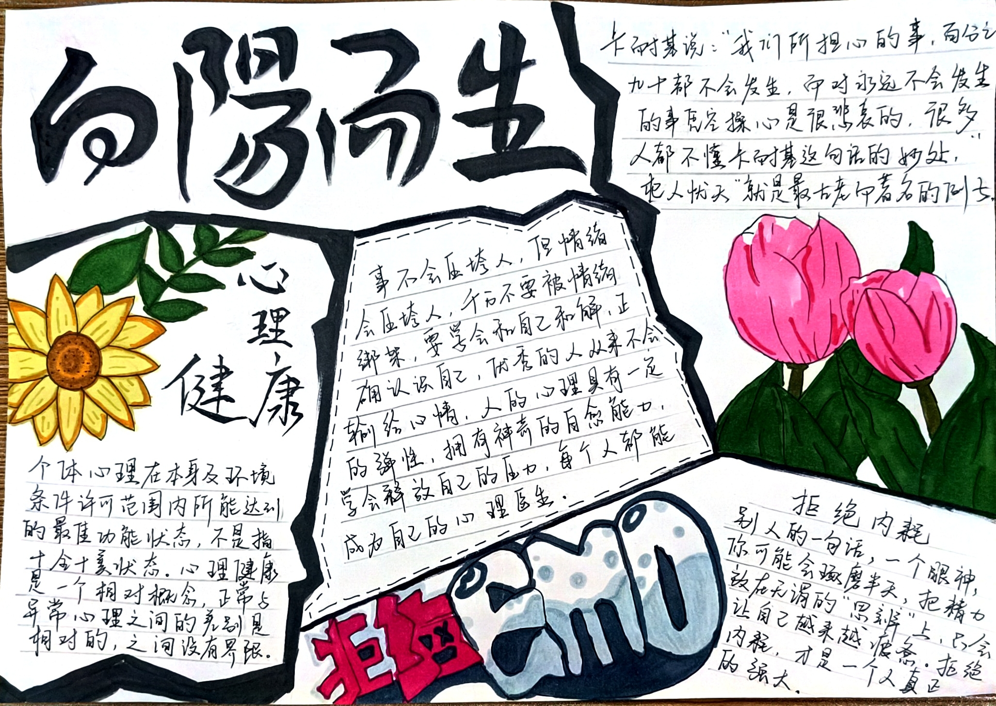 4月17日-23日,财经学院举办了“心有阳光,风雨无妨”手抄报活动。该活动将心理健康教育与美育、文艺相结合,不仅宣传普及了心理健康知识,还让同学们在参与过程中暂离网络社会,靠近心灵,体会现实生活中的愉悦感。