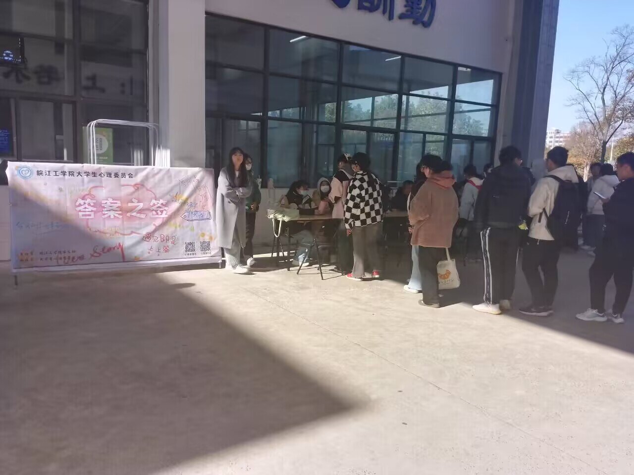 为提升学生心理健康维护意识,增强心理素质和行为调适能力,营造积极向上的校园文化氛围,2023年12月8日,大学生心理委员会在新利体育在线官网首页登录入口食堂门口举办了“答案之签”活动。