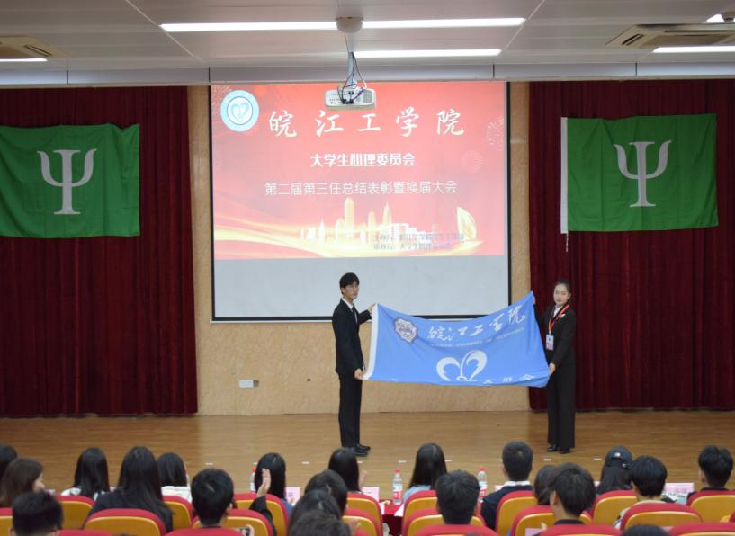 在心委会主席王焯对2020-2021年度工作进行总结发言后,新一任心委会主席马申友对未来工作做出了规划和展望。随后,新老两届主席进行了会旗交接仪式。