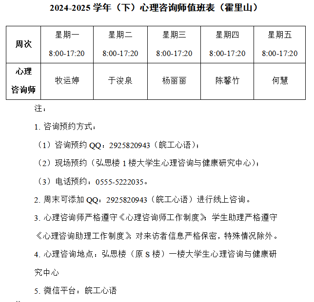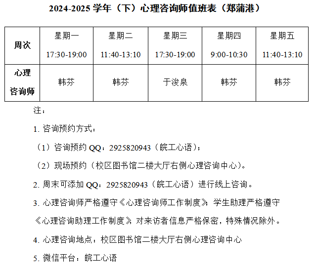 - 上一条2024-2025学年(下)心理咨询师值班表(郑蒲港)2025-02-19 09:07:57