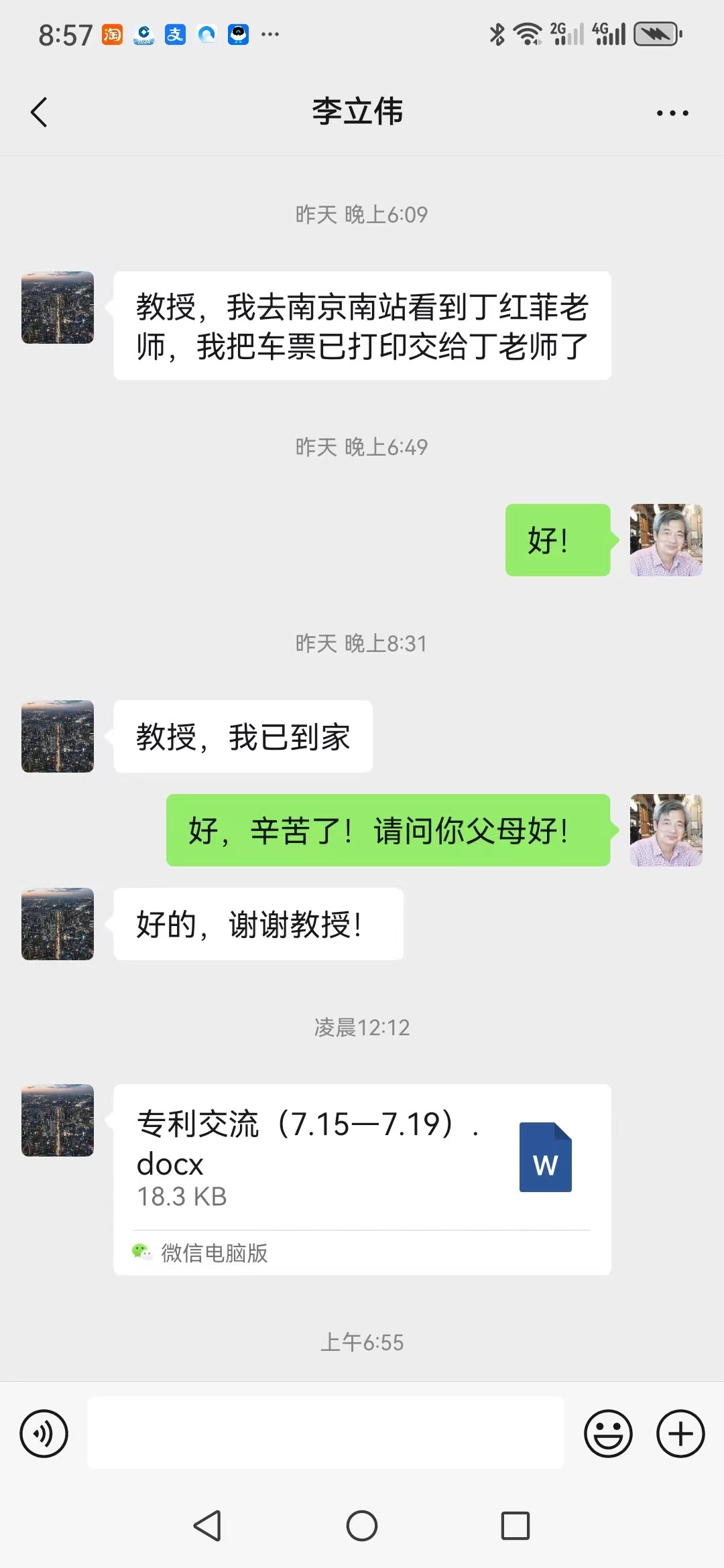 李立伟用微信发来辅导学生申报专利的纪要7月15日一种智能控温锅具装置 建议 一种智能厨房安全系统及其工作方法(张路遥)