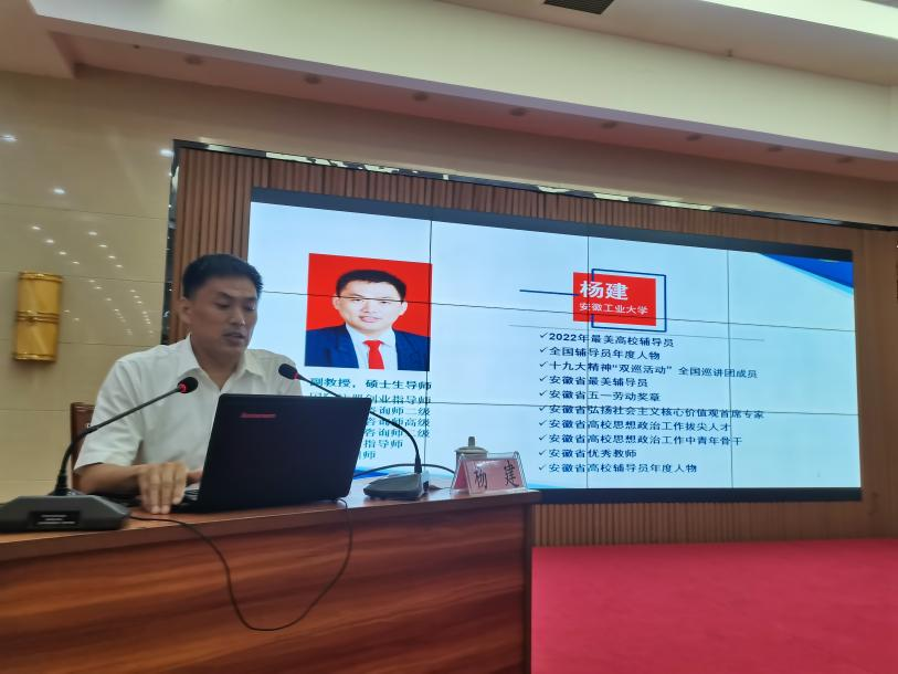 本次培训会邀请了2022年全国最美高校辅导员、第六届全国高校辅导员年度人物杨建副教授,安徽省教育厅学生心理健康教育专家指导委员会副主任委员王军教授,我校评估建设工作办公室常务副主任黄翠副教授、教务部常务副部长孙娴、机械工程学院党总支副书记颜婷婷、院务部副部长王鲲分别作“高校辅导员育人能力提升路径”,“学生工作中的话术之谈心谈话”,“合格评估与学生工作”“教学管理与学生管理工作的互动协作”以及“2023年高校思想政治骨干专题培训班学习心得分享”和“安全讲座”六个主题报告。他们从自身多年经验出发,分享了多个典型学生工作案例,使在场辅导员深刻感受到作为一名辅导员教师,既要做大学生的人生导师又要做大学生们尽职尽责的知心朋友。面对繁杂的工作和多重身份定位,要切实担当起大学生引路人的责任,切实关爱学生,以躬耕践行的态度踏踏实实做好每一件事。