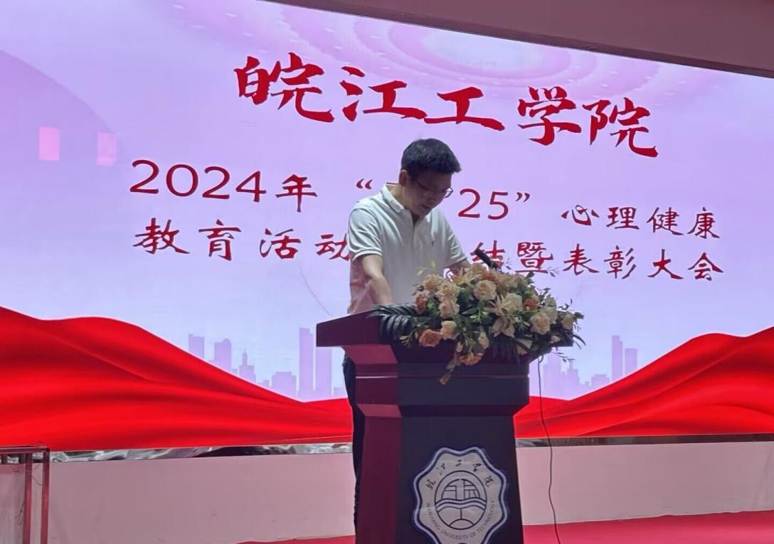 最后,汪朱华作总结讲话,他首先对获奖单位和个人表示祝贺,向为心理健康教育工作做出积极贡献的老师和同学表示衷心感谢。他指出,心理健康教育工作是社会发展的时与势,是学生家长的愁与盼,是立德树人的急与需。就继续推进心理健康教育工作,他提出三点要求:一是要强化思想认识,压紧压实工作责任;二是要加强大学生心理健康实践活动体系建设,打造学院特色心理活动,打响学校心理育人品牌;三是要不断加强自身学习,积极参与各项活动,做到理论知识与实践经验相结合,努力提高心理育人能力。