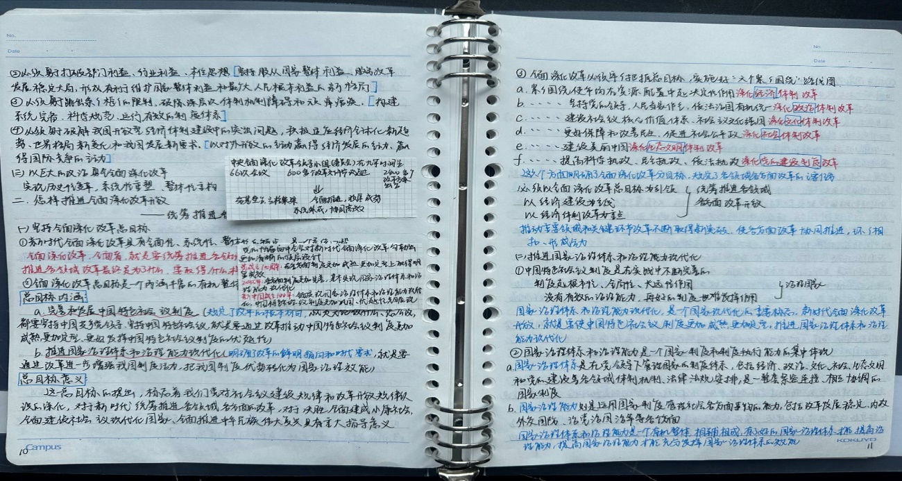 为了发掘和展示同学们在学习、思考过程中的精彩瞬间和独特见解,培养大学生的学习观念和思维能力,激发同学们的学习热情,营造良好的备考氛围,2024年4月-5月学校向1-3年级的学生展开以“笔”墨芬芳,有“记”可循为主题的笔记征集活动。在本次活动中,经过层层选拔,22级测绘工程专业的许学赟同学凭借清晰有序、系统条理、字迹清秀的笔记荣获本次活动的一等奖。