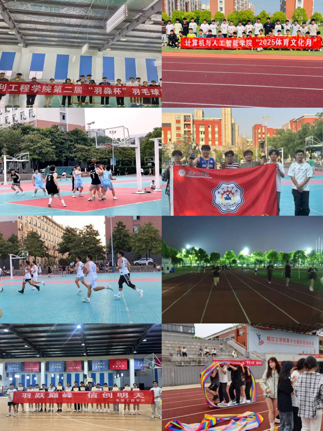 运动场上,青春活力尽情挥洒。水利工程学院“羽淼杯”羽毛球赛与“沃特尔杯”篮球赛点燃竞技热情,学子们在扣杀与传接中诠释拼搏与协作。电信工程学院“伊莱体克杯”篮球联赛、计算机学院“ACE杯”赛事,成为跨院交流的活力纽带。财经学院“跑出元气”健康打卡活动,鼓励学子用脚步丈量校园,在奔跑中释放压力、凝聚集体认同。机械工程学院“精英杯”篮球赛更将赛场化作展现专业凝聚力与青春风采的舞台。