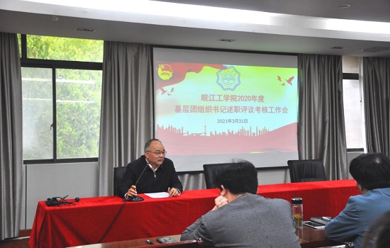 为贯彻落实团中央、团省委关于开展基层团组织书记述职评议考核工作的相关精神,3月31日下午,我校在行政楼317召开2020年度基层团组织书记述职评议考评会。校党委副书记张勤、副校长张建民、学工部副部长江春明、各二级学院党团组织负责人出席会议并担任评委,校院两级学生会执行主席、团支部书记代表及普通学生代表近50人参加会议。校团委书记尚贤燕主持会议。