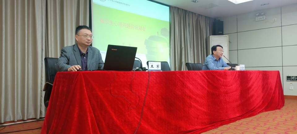 本次活动分为辅导员培训和辅导员经验交流两个阶段。在第一阶段,安徽工业大学心理咨询与健康研究中心主任、马鞍山市心理咨询师协会会长王军教授为全体辅导员进行了一场主题为“做学生心理问题的识别者”的专题讲座,王教授首先向大家介绍了心理健康的标准及大学生常见的几个心理问题,接着他结合具体案例分析了大学生心理问题产生的原因,最后他强调了“宽容”和“赞美”在做好学生工作中的重要性。