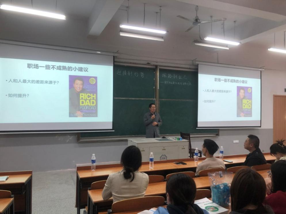 孙总经理结合新形势下的新业态,从职业目标、职业选择以及职业建议等多个方面展开宣讲,对职业生涯三个阶段以及职业选择三原则进行详细分析,帮助学生熟悉自身的职业目标,增加对职业规划的认知,做好职业生涯规划。