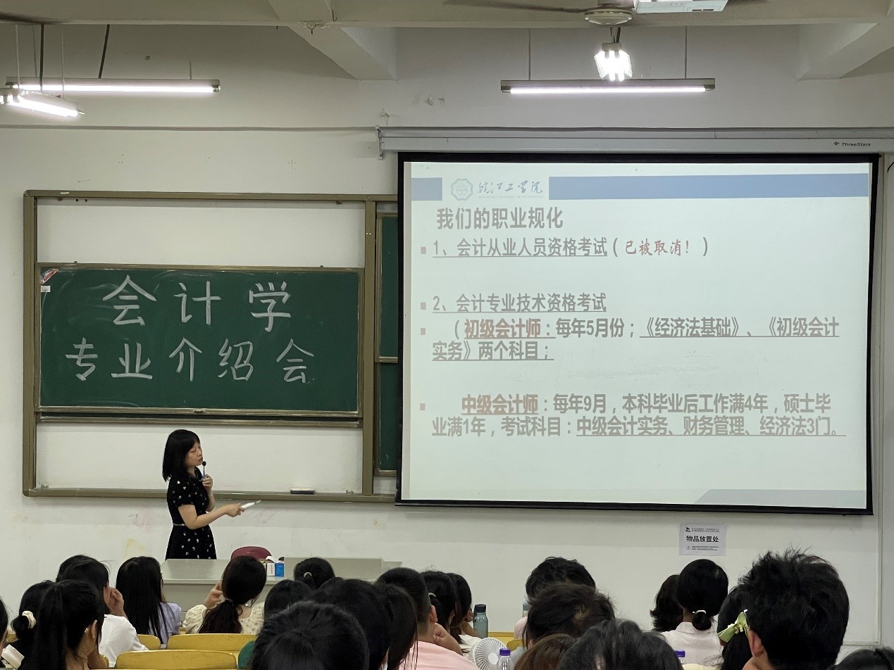 基础教育部主任兼会计专业负责人余明江、会计教研室主任刘晓和张胜男老师为23级会计专业的新生们进行了专业介绍。余明江首先向新生们详细介绍了会计专业的培养目标和课程设置,他鼓励新生们要学好专业课程,不断提高自己的专业水平。谈到会计专业阶段学习任务安排和学习方法时,刘晓提出了一些宝贵的建议。张胜男则详细介绍了会计专业所需要的人才素质,她鼓励新生们要注重培养自己的团队合作精神和创新意识。