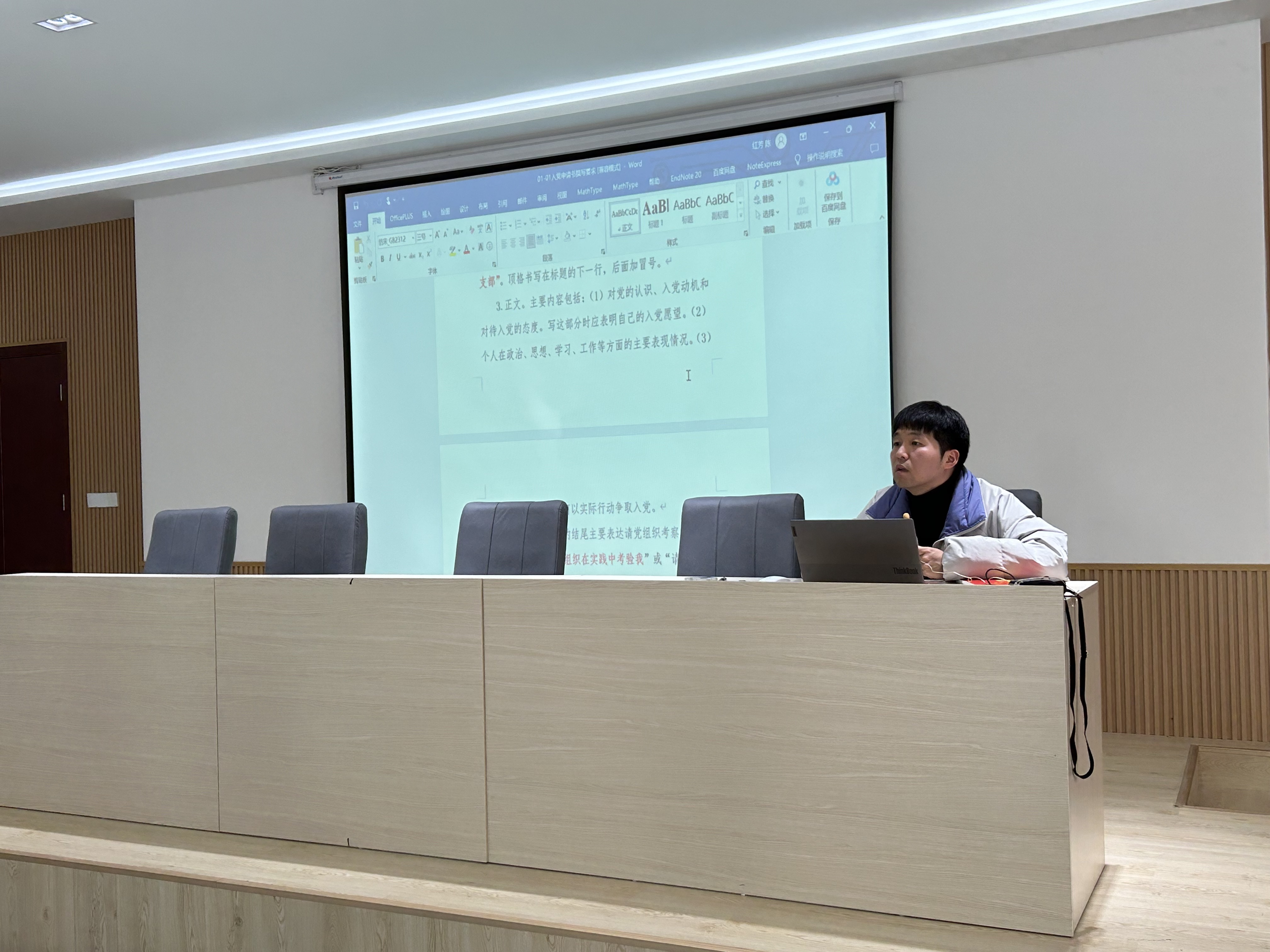 随后,许戎详细讲解了党员发展过程中各项材料的撰写规范和要求。他指出,撰写入党材料是党员发展的重要环节,也是反映学生思想政治状况的重要方式。因此,各位发展对象要认真对待每一份材料,做到内容真实、表述准确、逻辑清晰。同时,他还就如何撰写思想汇报、个人简历等方面提供了具体的指导和建议。