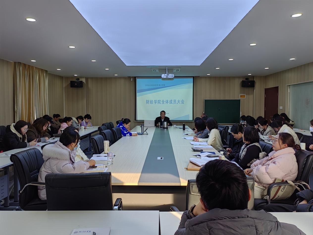 为全面落实学校高质量通过合格评估工作部署,2月26日下午,财经学院在弘毅楼517会议室召开全院教职工大会。学院院长徐德信、副院长席彦群和党总支书记杨安胜作重点发言,会议由院长徐德信主持。