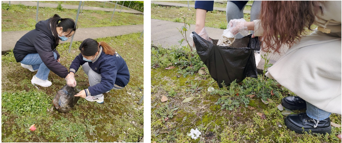 活动伊始,志愿者们准时到达指点卫生区,本组负责人详细交代此次活动的重点在于垃圾的清扫、归类以及落叶的集中处理,在进行简单的分工后便开始了清扫工作。在清扫过程中,志愿者们认真打扫,不放过任何死角,并将校园中的垃圾做好分类处理。随着袋中的垃圾越堆越多,树叶、纸屑、塑料袋、烟蒂、乱石等各种垃圾纷纷被清扫一空,卫生死角的杂物被彻底清除。志愿者们经过近一个小时同心协力的清理,财经学院卫生包干区的环境焕然一新。