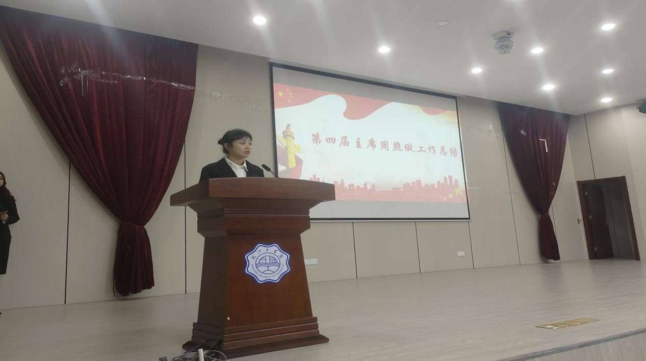 下面是第四届财经学院学生会主席周照为上一届学生会的工作做总结,并表达了对即将离任学生会的不舍,以及对未来的期待,期待新一届学生会可以继往开来、再创辉煌。周照主席表示学生会不仅是一个锻炼能力的平台,更是一个结交挚友、收货成长的大家庭。每一次活动的成功举办,每一次活动的圆满完成都让大家更加坚定的站在一起,共同推进财经学院的发展。第四届财经学院学生会的工作至此就完美落幕了,期待新一届学生会的传承和发扬。
