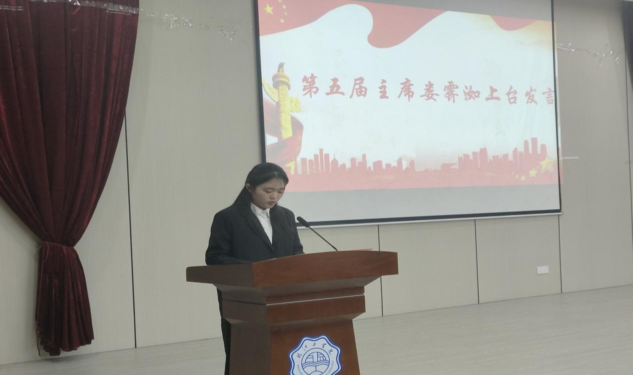 紧接着由第五届主席娄霁洳上台发表就职感想,感谢各位领导老师、第四届财经学院主席团的培养以及财经学院全体成员的信任与支持。娄霁洳主席表示在往后的工作中继续践行财经学院“全心全意为学生服务”的宗旨,做到“牢记初心,不忘使命”一切以学生为工作,用行动来证明能力,用行动来为学生会添彩,努力将学生会推向更美好的明天。