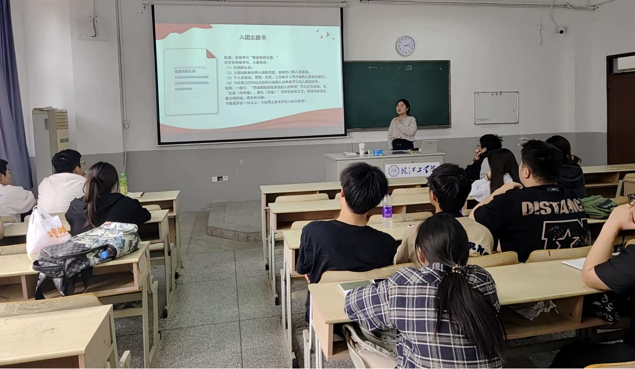 本次团课由院团委书记史思岩讲授。她首先为大家讲述了中国共产主义青年团的发展史,让大家深刻领会了中国共青团的重要历史意义。接着她带领大家细致地观察团徽,告诉大家团徽中包含着团旗、齿轮、麦穗、初升的太阳及其光芒,以及写有“中国共青团”五个字的缓带,她告诉大家团徽象征着共青团在马克思列宁主义,毛泽东思想光辉照耀下,团结各族青年朝着党所指的方向奋勇前进。随后给大家展示了团旗、团歌《光荣啊,中国共青团》与入团誓词。