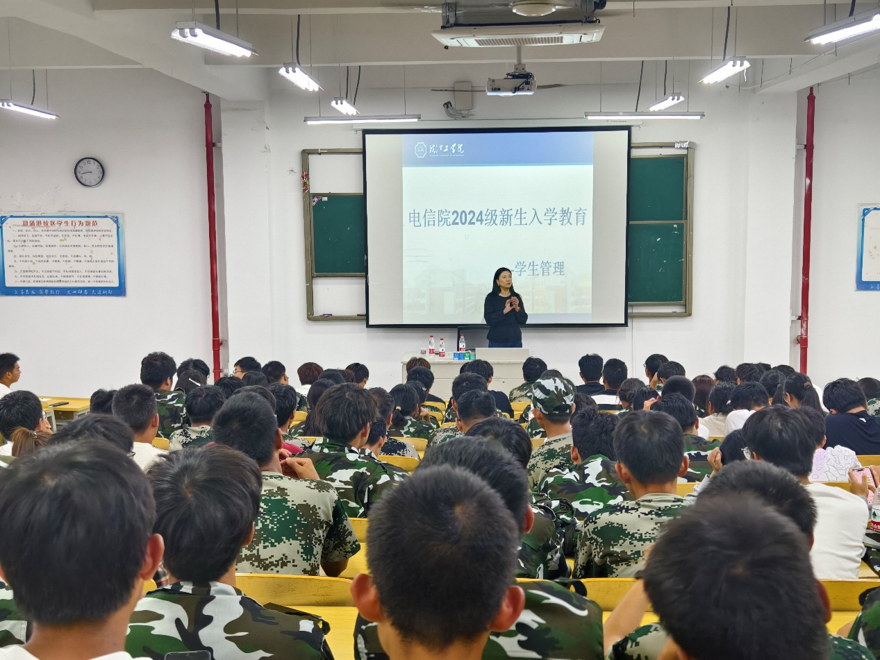 为扶正电信院新学子的大学观,强化党建引领,增强入党认知,9月23日晚,电信工程学院在新利体育在线官网首页登录入口开展2024级新生入学教育,电信院党总支书记杨安胜、党总支副书记马羽佳、电信院党政办主任张高桢担任主讲。