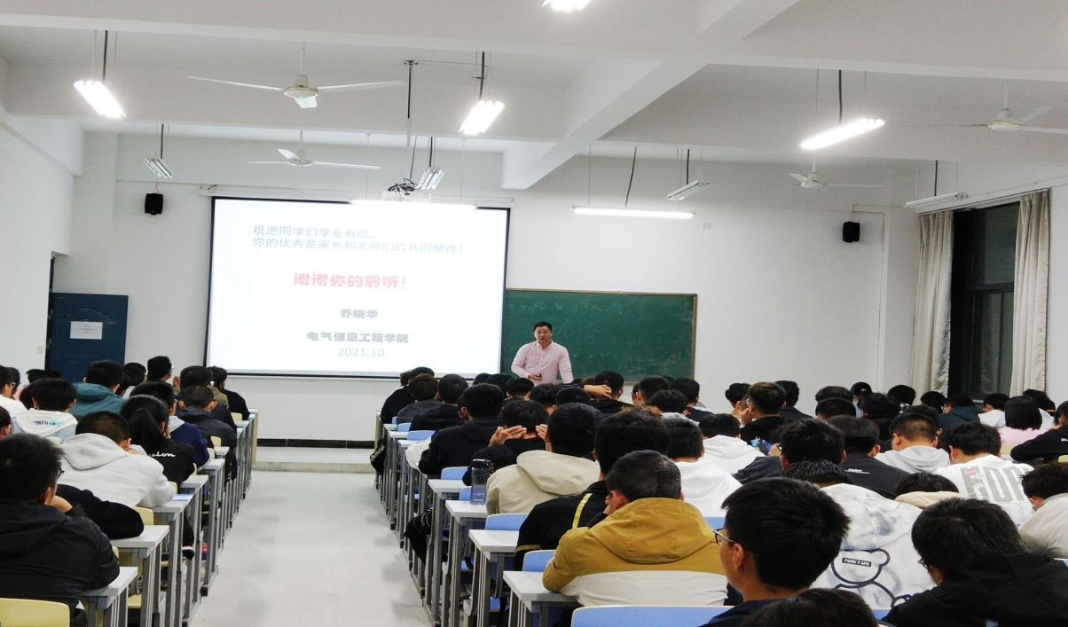 为了让2021级新生更好地认识本专业基本情况以及就业前景,明确未来目标和发展方向,解答专业相关问题,10月19日晚上,院长、电气工程及其自动化专业负责人乔晓华,通信工程专业负责人朱昌平,自动化专业负责人胡钢,计算机科学与技术专业负责人江冰,院长助理、电气工程教研室主任胡徐胜,通信工程教研室主任纪萍,分别在新利体育在线官网首页登录入口C301、E202、B202、C201开展了电气工程及其自动化、通信工程、自动化、计算机科学与技术四个专业的新生专业认知教育,新利体育在线官网首页登录入口学工办副主任刘华辉、2021级辅导员周颖及全体2021级新生参加了讲座。