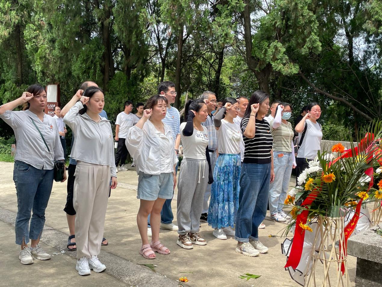 为深入开展学习贯彻习近平新时代中国特色社会主义思想主题教育,6月29日上午,电信院党总支前往西梁山革命烈士陵园开展“缅怀先烈,躬耕教坛”主题教育专题党课暨主题党日活动,党总支书记杨安胜,副书记马羽佳,全体教师党员及部分教师参加了活动。