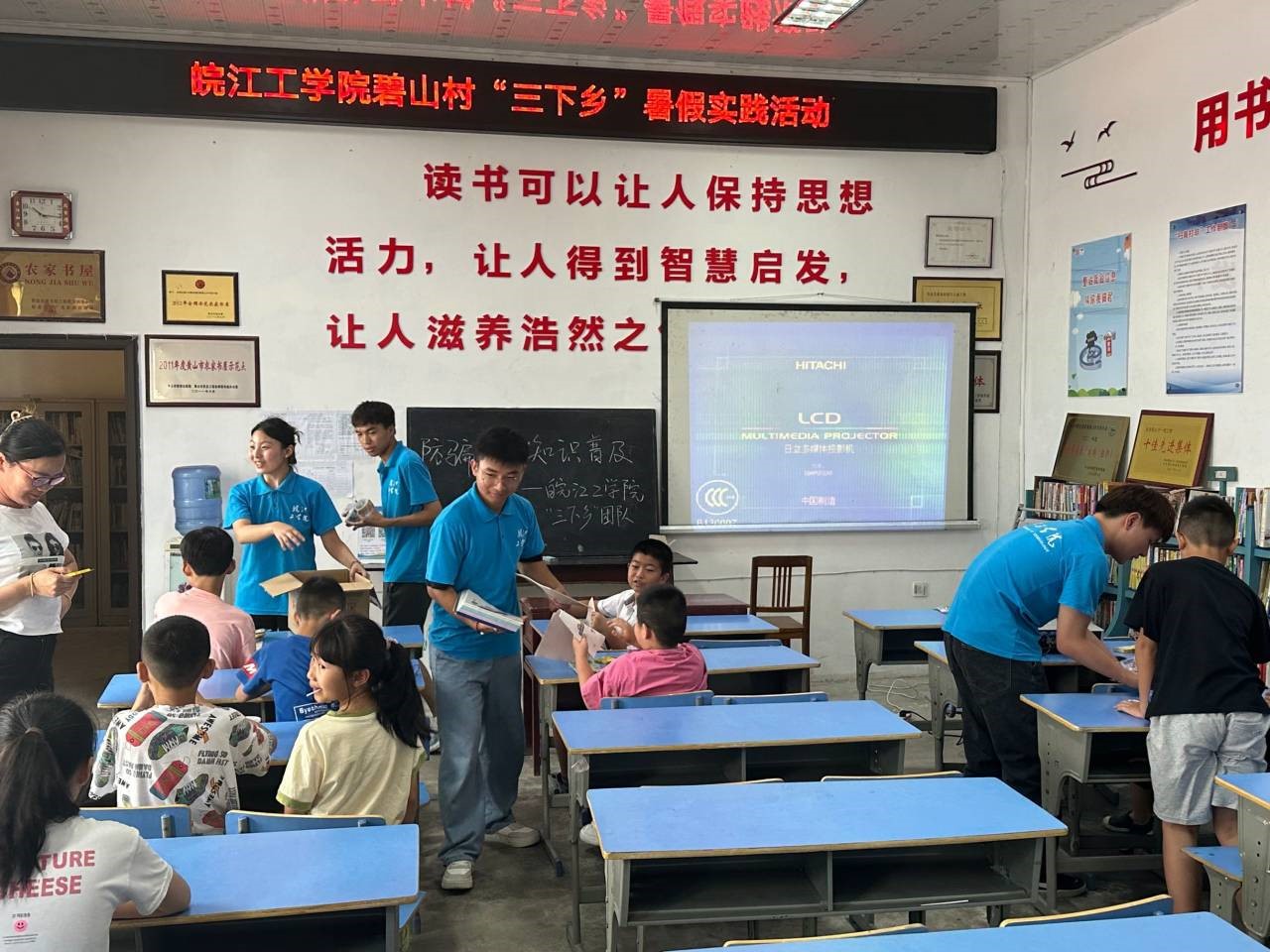 为了增强孩子们对家乡非遗文化的了解以及自身安全的保护,实践团队的成员们在村干部的带领下,前往“阳光之家”进行相关活动。开展了有奖知识竞答活动,孩子们积极参与到问答环节当中,在实践团队成员和孩子们的互动中,孩子们对家乡文化的了解进一步加深;随后实践团队成员给孩子们进行了暑假注意事项宣讲,并教会他们基本的应急知识,其中包括防溺水安全、交通安全、防骗防骗等,让孩子们更好的保护自身安全。