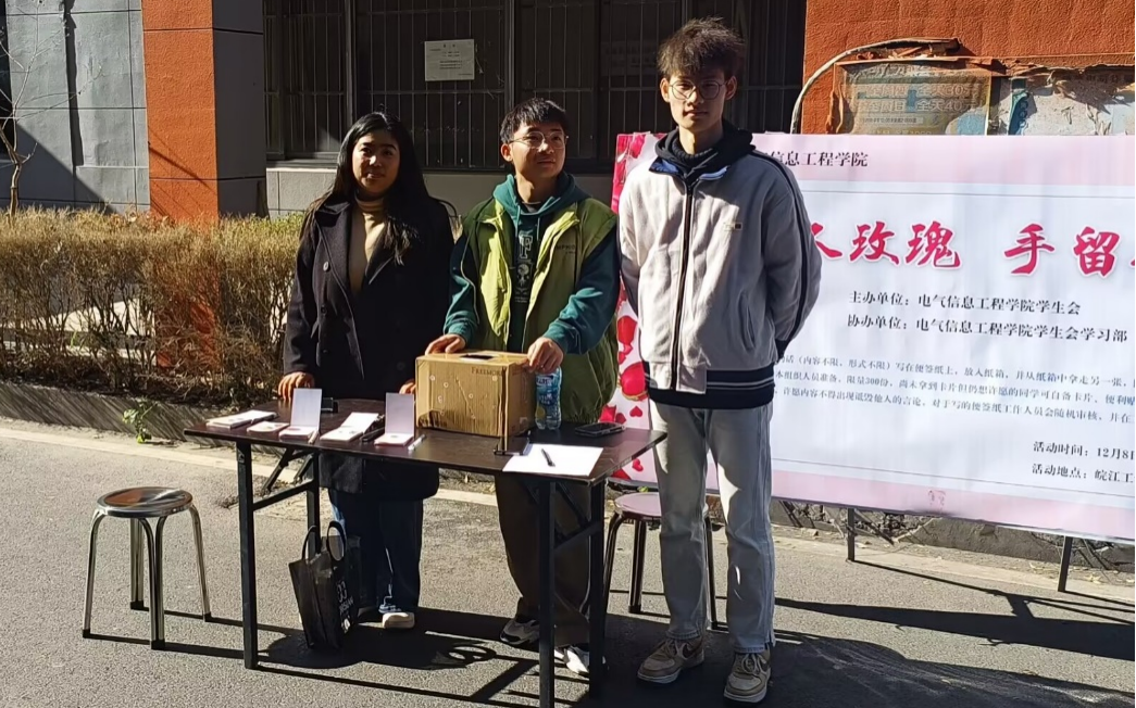 随着学生学习任务的日益加大和考研就业等压力的加据,越来越多大学生会感到焦虑和压抑。为了帮助学生们排解心理压力,提高自我认知。电气信息工程学院于2023年12月8日中午,在霍里山校区一食堂门口举行“赠人玫瑰,手留余香”的暖心活动。
