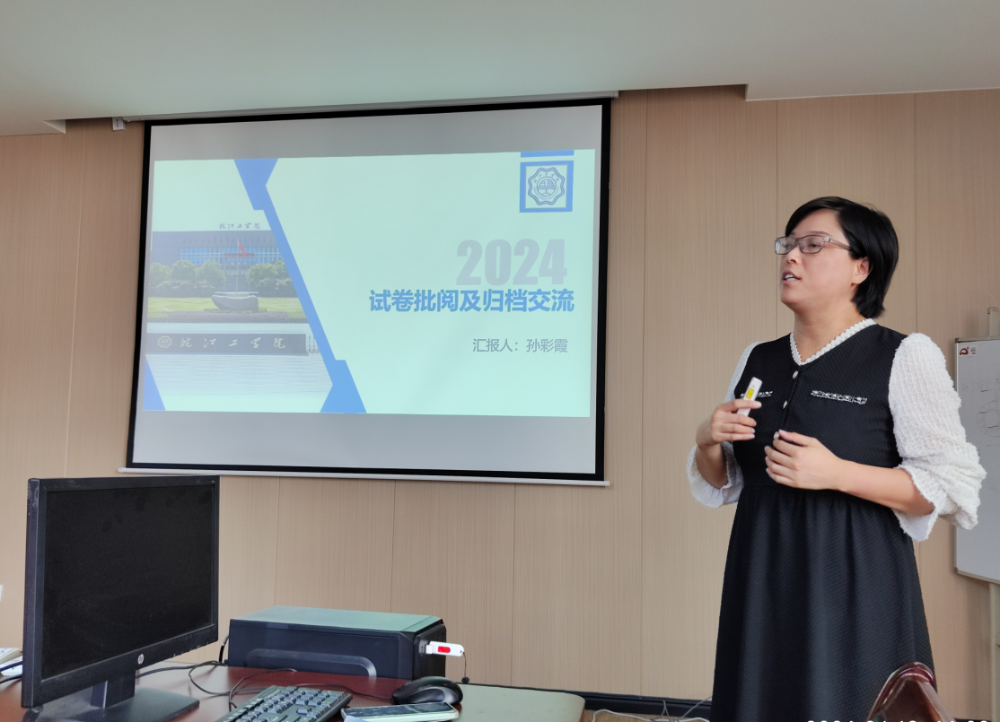孙彩霞首先分享了对学校新修订的本科教学质量标准规范的理解。就试卷评阅及材料归档主题分别从试卷平时成绩要求及存在的问题、试卷批阅要求及存在的问题、试卷归档要求及存在的问题等三个方面分享自己的做法与经验。