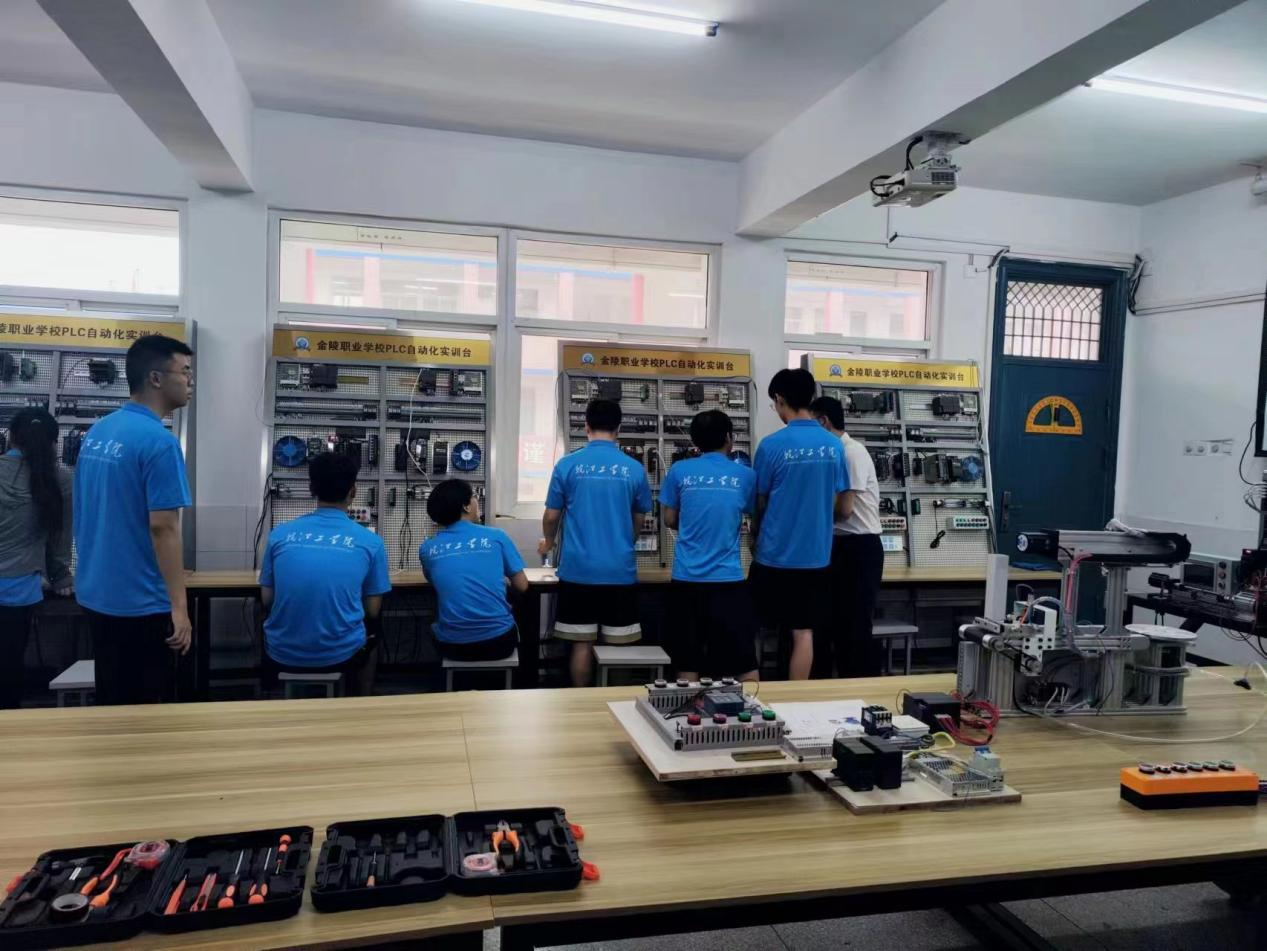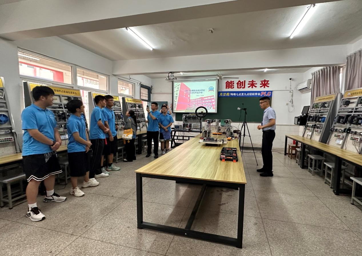 明跃自动化科技有限公司的卢昌明老师详细介绍了这些设备的功能和操作方法,展示了如何通过编程实现对生产流程的精确控制。学员们在这里进行实际操作,将理论知识转化为实际技能。参观团队成员们饶有兴致地观察着学员们的实践操作,不时与老师和学员交流,了解他们在学习过程中的心得和遇到的问题。