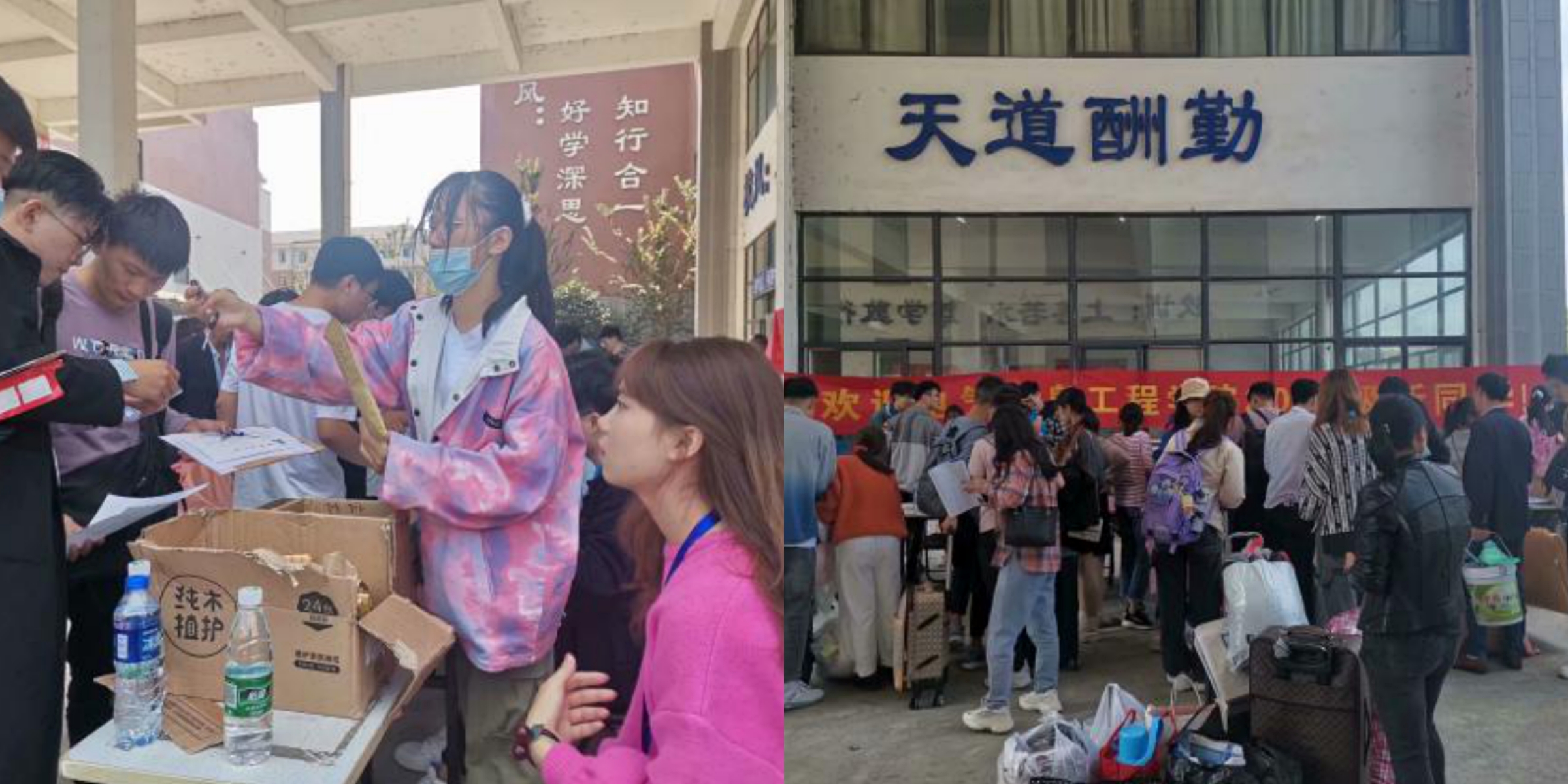 10月11日上午7时,电气信息工程学院2020年迎新工作在新利体育在线官网首页登录入口正式开始。学院党总支对此次迎新工作高度重视,在新生到来前进行了精心部署及周密安排,我院各科室、支部、分团委、学生会及志愿者近百人投入了本年度的迎新工作中。工作人员在学校大门口及报到现场井然有序的开展接待新生工作,569名2020级新生们完成了核对报到信息等报到手续,顺利入学。