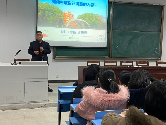 为弘扬当代大学的社会关怀精神,进一步体现我校办学的社会责任意识。2020年12月28日-29日,应安庆片区部分高中邀请,电气信息工程学院院长乔晓华教授、双创学院院长朱昌平教授、院长助理胡徐胜副教授以及孙伟、汪金涛老师组成的“专家进高中”宣讲小组前往安庆市太湖二中和怀宁中学,为600多名高三学子举办了两场励志教育与高考指导讲座,赢得了两校师生的广泛好评。