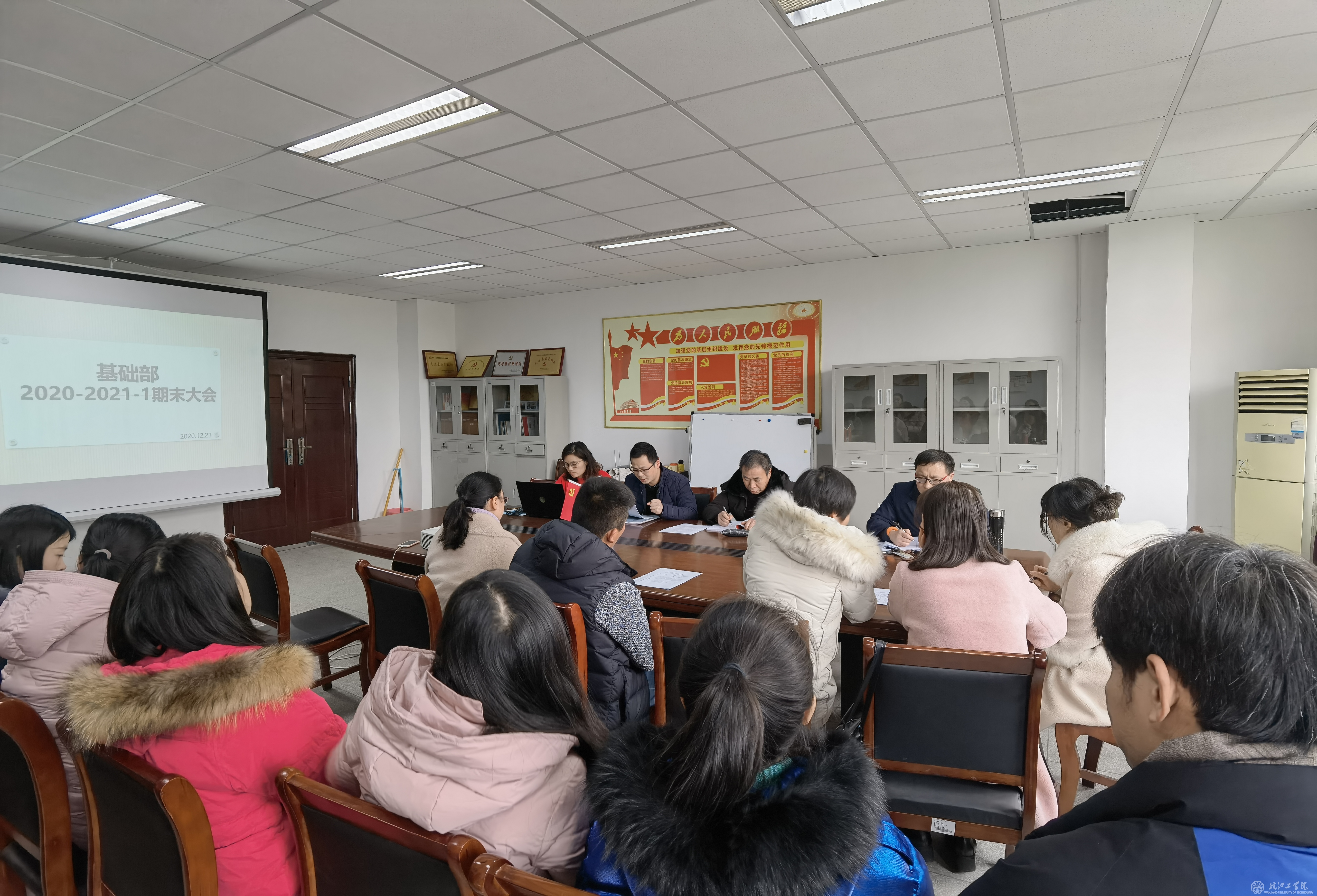 2月23日下午,基础部在E218召开年度总结大会,回顾2020年全年的工作情况,安排期末阶段的各项任务,党总支书记宋洪生、副主任吴云标、主任助理彭饮冰及全体专职教师参加会议,会议由吴云标主持。