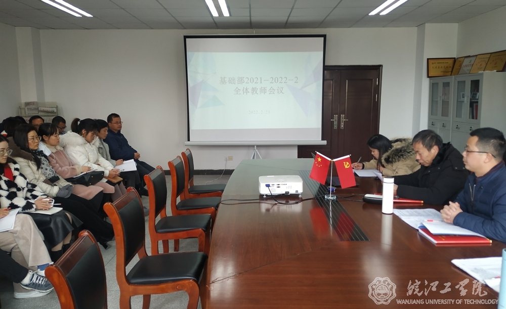 2月23日下午,基础部在E218召开新学期全体教师会议,基础部党总支书记宋洪生、副主任吴云标及全体专职教师参加会议。根据校院务部要求,本次会议的主题是传达校中层干部专题研讨会精神,讨论2022年度学校重点工作。吴云标主持会议。