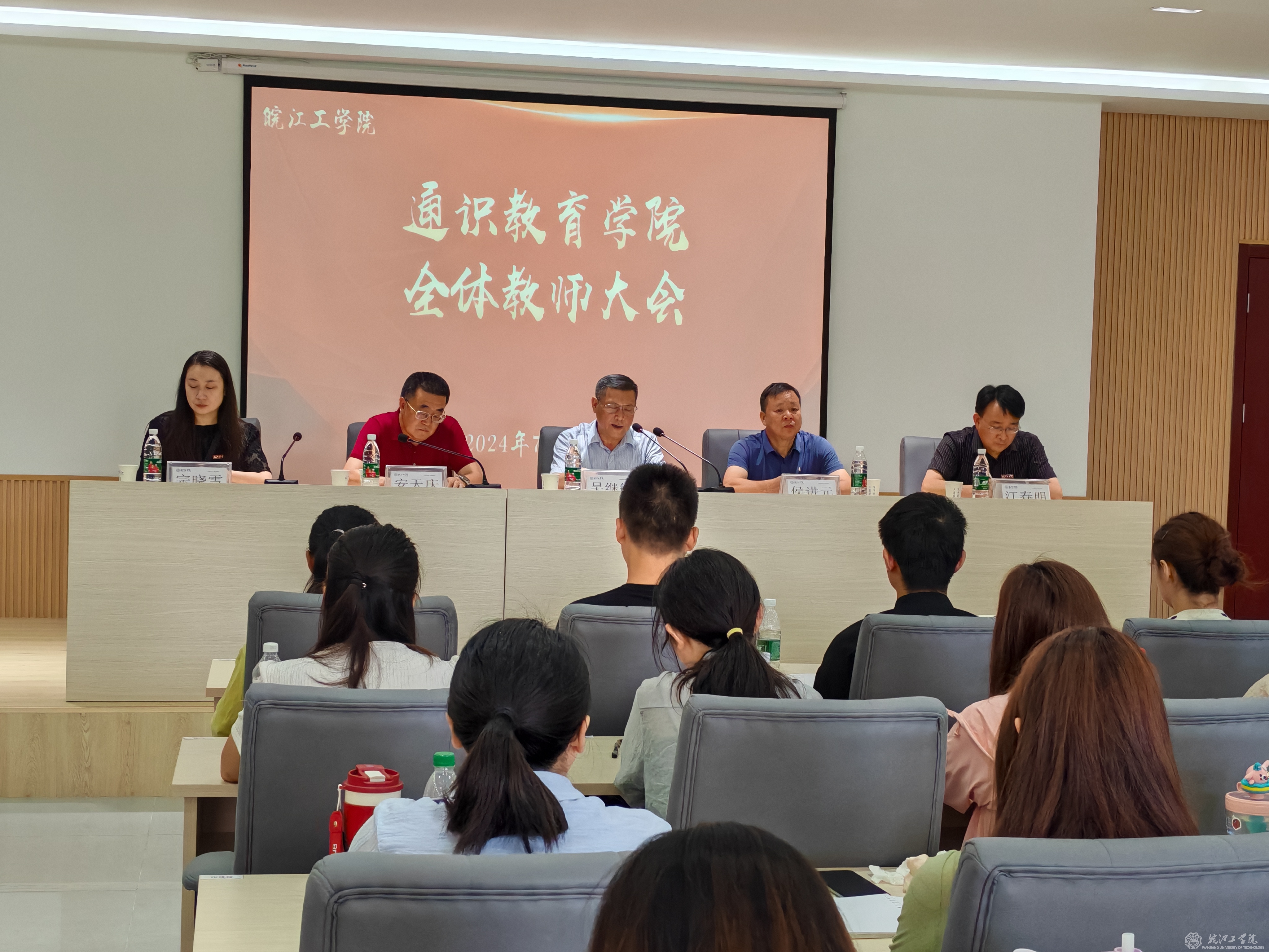 7月7日上午,通识教育学院在霍里山校区弘毅楼209会议室召开全体教师大会。校长吴继敏、副校长侯进元、院务部部长江春明、人力资源部常务副部长宗晓雪出席会议,院务部副部长郭天宇、通识教育学院院长安天庆、常务副院长余明江、院长助理毕胜琴以及通识教育学院全体教师参加会议。会议由副校长侯进元主持。