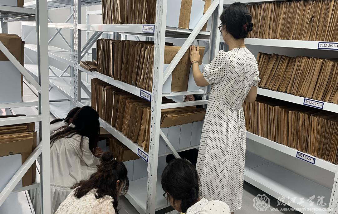 会议结束之后,由教研室副主任周倩带领新进专职教师对材料进行统筹、排序、归档和检查。(通识教育学院 供稿)