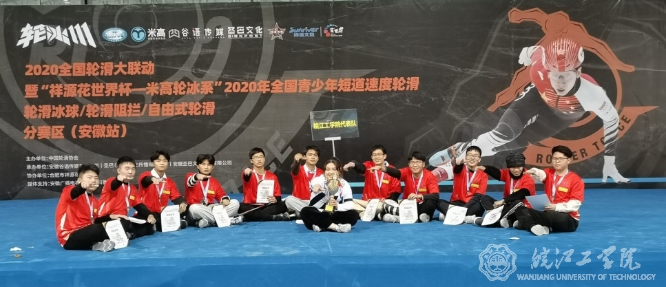 本次大赛吸引了安徽省内各地区63支代表队,参赛人数1300余人。我校首次派代表队参加此项赛事,共11名运动员,由基础部体育教研室张建玉老师带队。我校参加的阻拦赛,是一个团队竞赛项目,极具对抗性,同时对团队合作有极高的要求。张建玉老师带领校轮滑社提早半年开始备战,日常训练中不仅夯实轮滑基本功,而且培养了队员之间的默契,确立了符合队员风格和优势的作战体系和比赛战略战术。在省赛中,我校队员张恒、许唐飞、汪先阳、李劲、宋年坤、周琪丰、钱鑫龙、宋玉亭、李文、张谦、张旭等不畏强手,奋勇拼搏,一路过关斩将,最终斩获比赛亚军,展示了我校学子阳光、健康、向上的精神风貌。