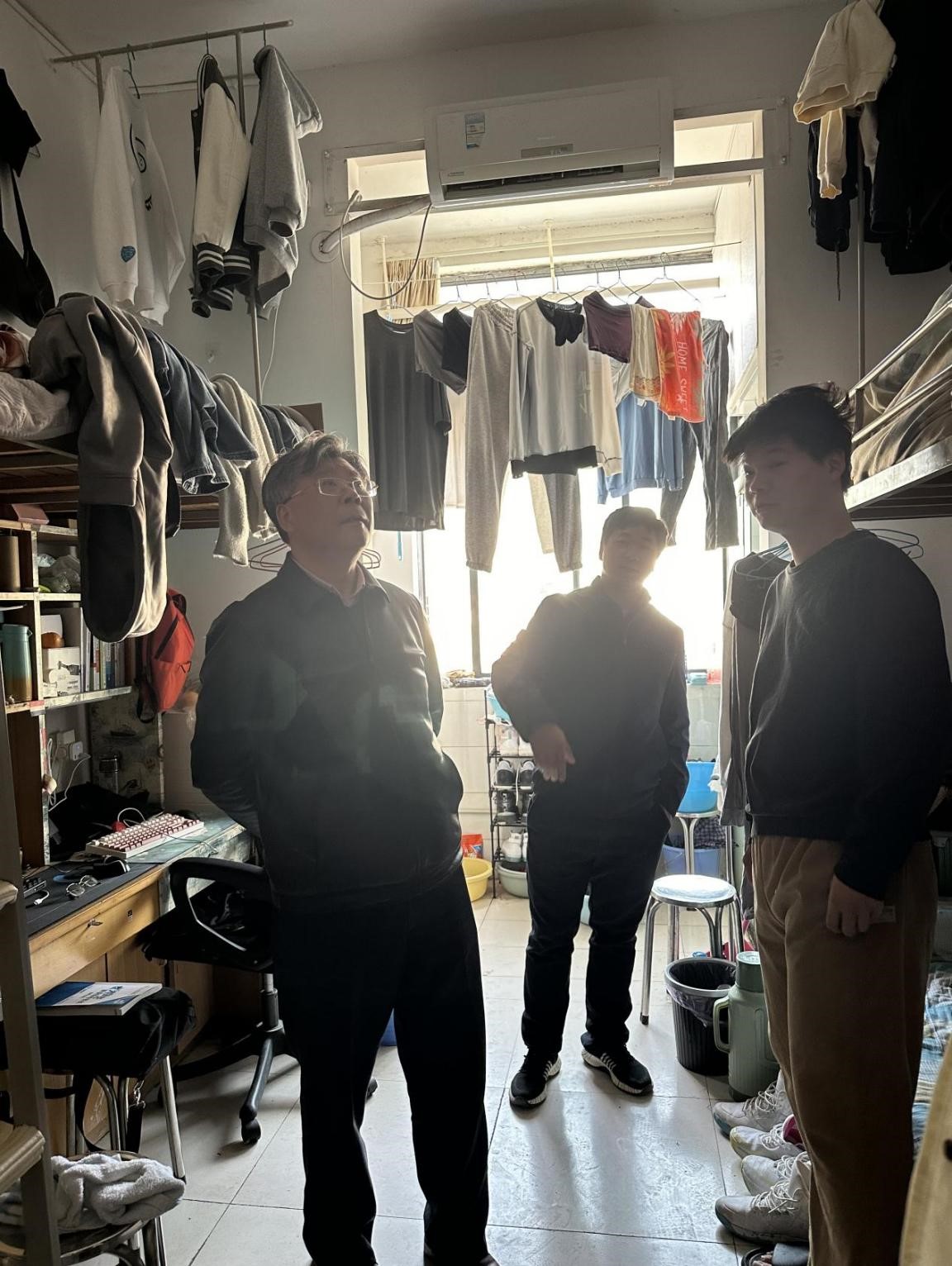 走访过程中,胡徐胜院长在与学生交谈中指出,检查宿舍是为了加强与学生的交流,了解学生的需求,更好地帮助学生养成良好的生活习惯、解决生活中的困难。王平书记要求辅导员要强化学生的学风建设,督促好学生的课下学习,降低学生打游戏情况,帮助学生明确未来规划、提高自身综合素质。韦晨珺娃副书记提醒学生一定要提高安全意识,杜绝使用大功率电器、抽烟等行为,防患未然。