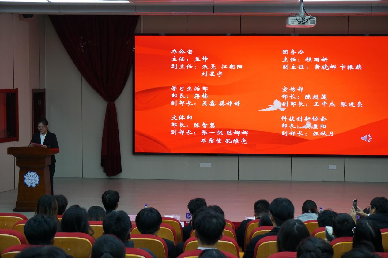 随后,学生书记蒋金鑫代表学生会主席团对学生会的各级学生干部提出了殷切希望和要求。他强调,学生会是学校与学生之间联系的桥梁与纽带,是实现学生自主管理、自我服务、自我教育的重要途径,学生会干部要发扬奉献精神,树立大局意识和服务意识,坚持客观公正、纪律严明、精益求精的工作准则,为学院的发展建设贡献自己的力量。