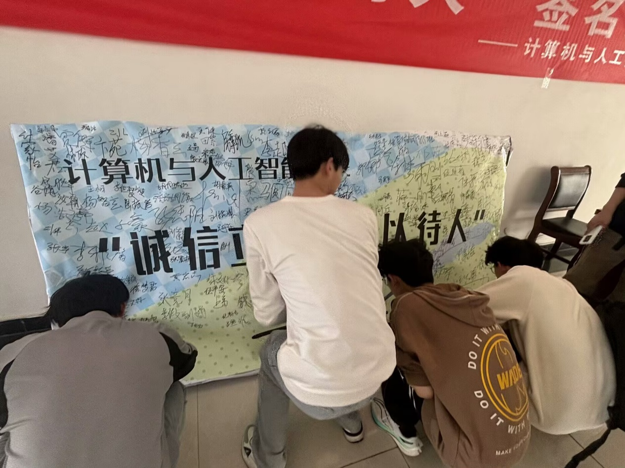 2025 年 3 月,计算机与人工智能学院开展“诚信立身,诚以待人”德育系列活动,采用“线上-线下”结合的方式进行全方面宣传教育,包括:抖音号诚信宣传视频,诚信主题教育团课及班会,微信公众号诚信发文及征稿,诚信签名等。