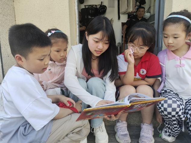 第二天,愿者们在贺庄小学展开了“破冰行动”,通过与学生们一起玩小游戏和互动提问,迅速拉近了与孩子们的距离。这些游戏设计得既有趣又富有教育意义,比如“信任背摔”和“盲人方阵”,帮助孩子们在欢声笑语中学会信任和协作。互动提问环节则让孩子们有机会展示自己的知识和想法,同时也让志愿者们更好地了解了孩子们的兴趣点和知识水平。上午的活动宣讲让孩子们对即将开展的活动充满了期待。宣讲中,志愿者们详细介绍了活动的目的、流程以及可能获得的收获,通过生动的语言和形象的展示,激发了孩子们的好奇心和参与热情。下午,志愿者们根据不同年龄段的学生推荐了适合的读物,并与他们进行了共读。在这个环节中,志愿者们不仅亲自朗读故事给孩子们听,还鼓励孩子们大胆表达自己的感受和理解。通过共读,孩子们不仅提升了语言表达能力,还学会了如何从故事中提取教育意义,并将其应用到日常生活中。为了确保阅读活动的有效性,志愿者们还准备了阅读理解的小测试,以及讨论环节,让孩子们有机会分享自己的阅读体验,培养他们的批判性思维和表达能力。整个活动不仅丰富了学生的课余生活,还为他们提供了一个展示自我和学习交流的平台。
