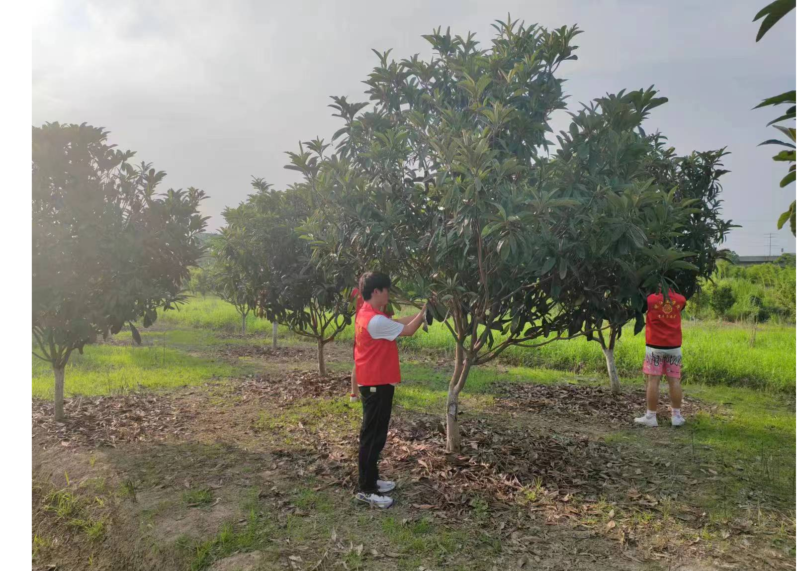 在果农的带领下同学们来到了果园,并且在果农的指导下同学们学会了如何对果树进行对果树观察是否有病虫害。同学们也在他们的热心肠发动下积极地去帮助果农们清理果园里面的枯树枝和树干,虽然天气是炎热的但是同学们的心也是炙热的,即便大家都累的满头大汗,但是同学们并没有感觉到累,感觉到的是快乐与对果树丰收的喜悦。