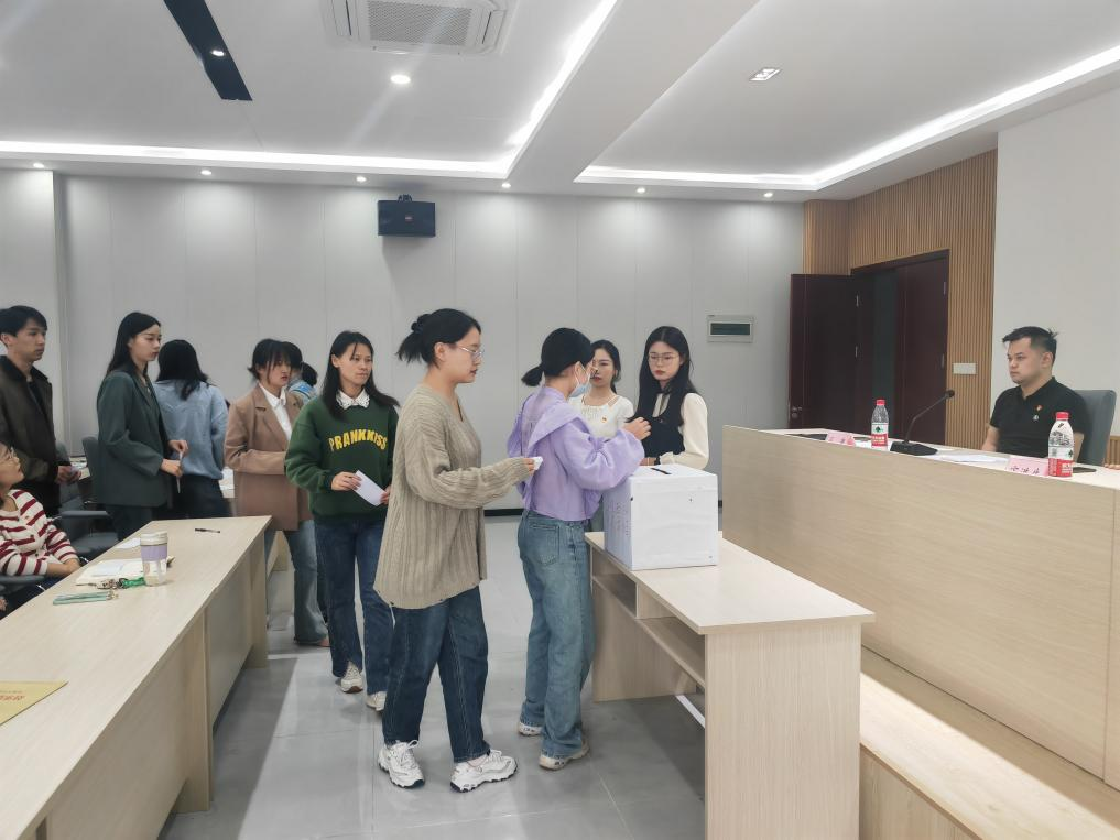 换届选举大会在庄严的国歌声中拉开序幕,党总支书记宋洪生对上届党总支的工作情况做了详细地汇报,副书记冯康公布换届选举办法,大会审议了工作报告和选举办法,宣布了新一届的党总支委员名额和候选人名单。同时提出监票人和计票人人选,由具有表决权的党员表决选出监票人陈晶晶、齐欣然,计票人尚蓉、沙晨羽,杨冬竹。全体党员认真填写选票后,走到票箱前郑重投下自己的一票,现场气氛热烈庄重,投票工作规范有序。通过无记名投票方式,差额选举产生了宋洪生、冯康、朱良平、李欢、韦晨珺娃、陈娟娟、吴淑梅七名同志为新一届党总支委员会委员。
